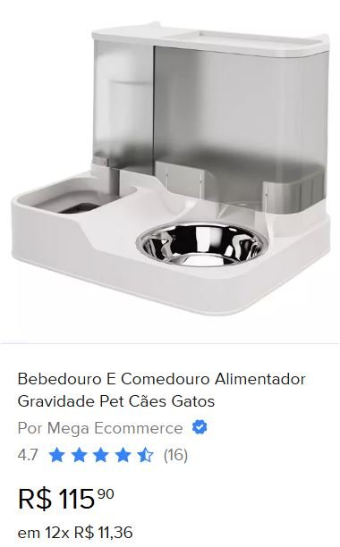 – Tipo de produto: Bebedouro com Comedouro