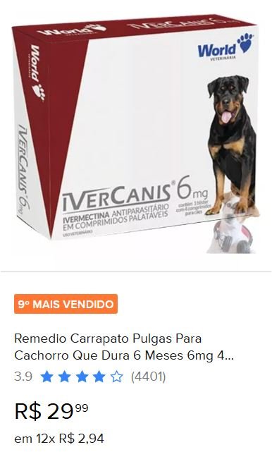 Remedio Carrapato Pulgas Para Cachorro Que Dura 6 Meses 6mg 4 Comprimidos